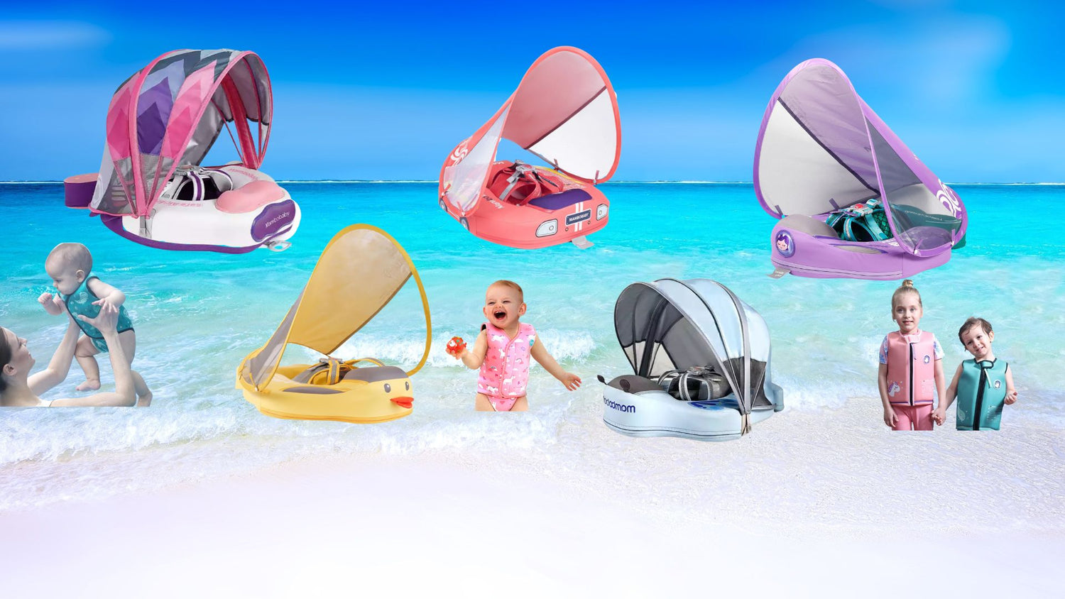 Mambobaby floats are designed by parents for parents. The floats are solid to prevent deflation, and all have a canopy to protect your little ones delicate skin.