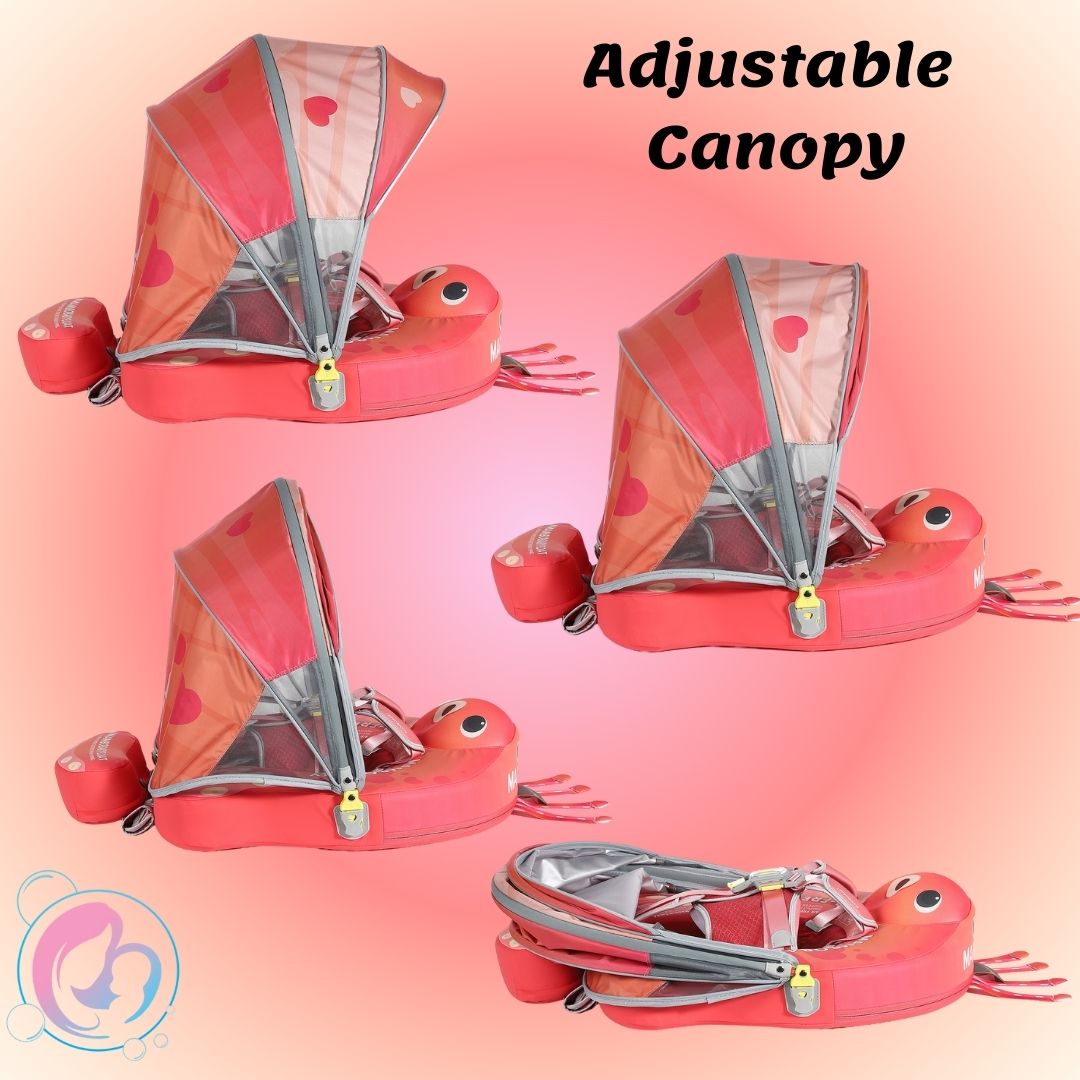 The 🐚🐙Octo Hug 🐙🐠 Chest Float includes a protective canopy designed to keep your baby shaded and cool: